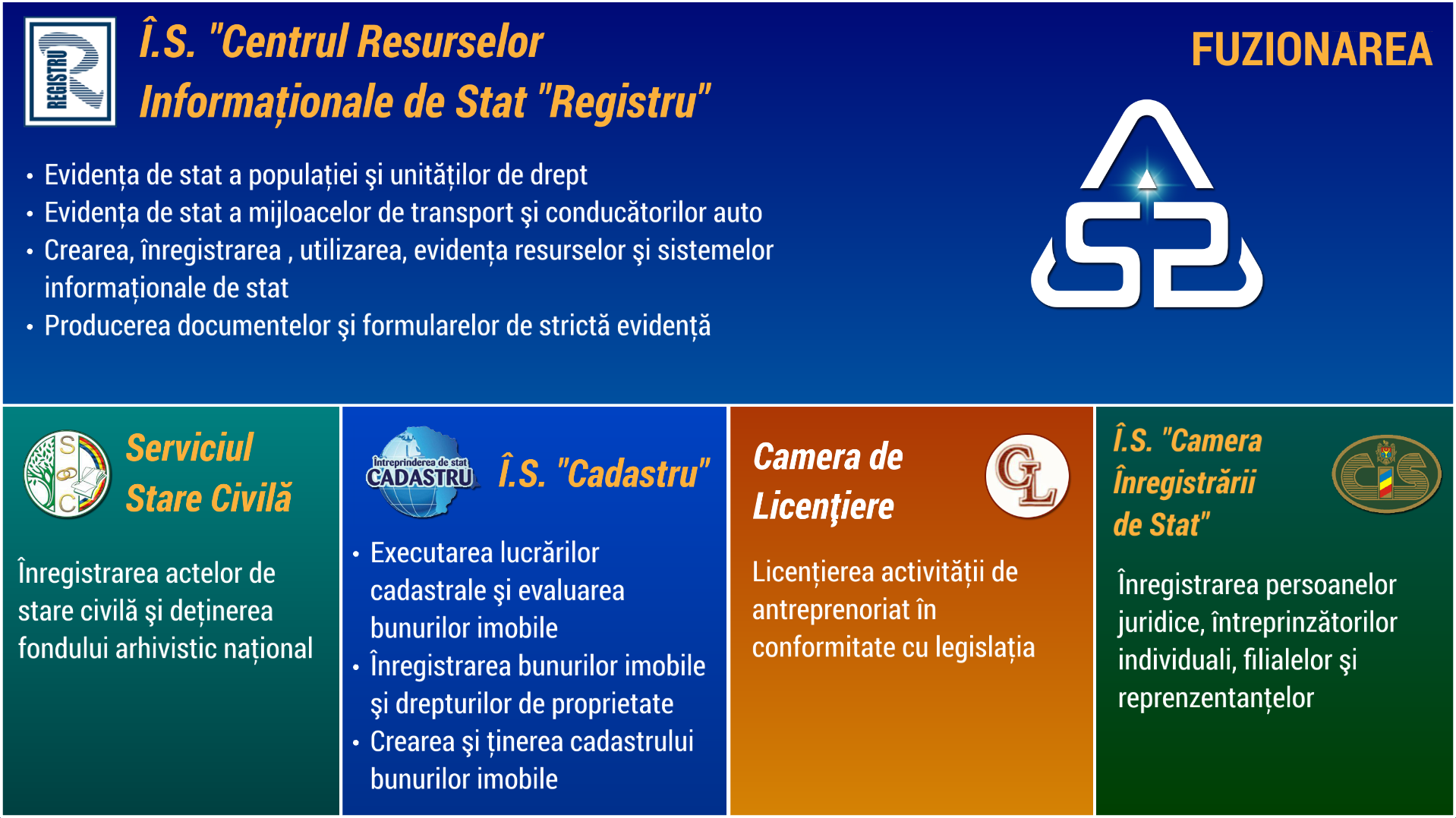 Este deţinătorul resurselor de stat de bază, al Registrului de stat al populaţiei, al registrului de stat al unitaţilor de drept si ţinerea registrelor departamentale. Obţine dreptul exlusiv de elaborare si perfectare a documentelor de identificare si înregistrare, precum si asupra realizării comenzilor directe privind perfectarea bucletelor si blanchetelor de strictă evidenţă.